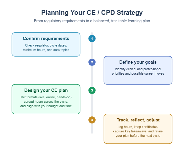 - Planning your CE/CPD around your career goals and patient needs makes it far more valuable than simply meeting minimum numbers.